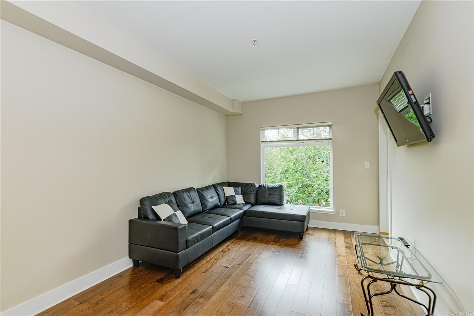This bright, cozy 1 bedroom home has many great features, some of which include hardwood floors, in-suite laundry, granite countertops, a spacious, well-designed kitchen with ample cupboards, stainless steel appliances and a powder room for guests! Wall mounted TV included. Large southwest patio for outdoor relaxing with your morning coffee or winding down watching sunsets in the evening. The bedroom is large with a 4 piece ensuite. The building was built with Geothermal radiant in-floor heating and custom soundproofing between all floors for maximum privacy. The endless hot water, courtesy of the radiant heating is included in monthly strata fees, and the building boasts large separate heated storage, bike storage, and secure underground parking. Walking distance to Victoria General Hospital, the Eagle Creek Shopping Centre and steps to the galloping goose. Rentals and pets allowed (see bylaws) Lots of visitor parking.
